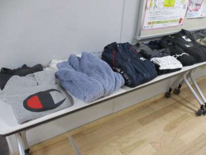 冬場になり、ジャンパーやトレーナー、手袋等の落としものが目立つようになりました。名前記載のないものが多く、持ち主への返却ができておりません。学校に持ってくるもの、着てくるもの等にはできるだけ名前を記載していただけると助かります。