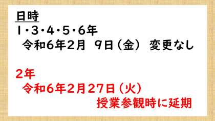 ・2年生のみ2月27日(火)の参観の日に延期いたします。