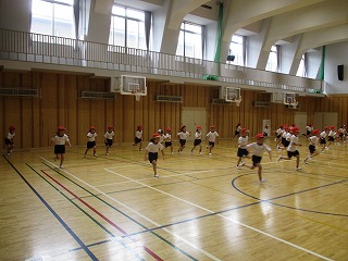 今日も学年で一緒にアリーナで体育をしました。
