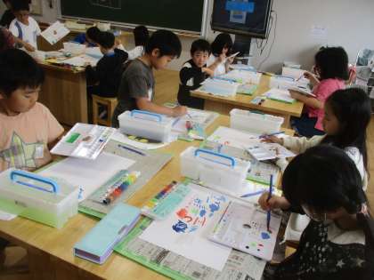 3年 図画工作「絵のぐ+水+ふで=いいかんじ!」