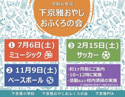 令和6年度下京雅おやじおふくろの会の実施日程についてお知らせさせていただきます。