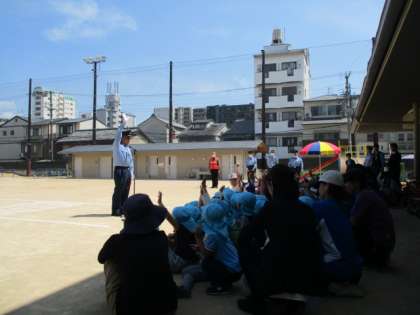 式は、となりの楊梅幼稚園の園児さんと一緒に行い、横断歩道を安全に渡る練習も一緒に行いました。