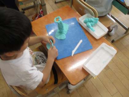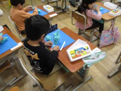ねんどを使って学習しました。子どもたちは、初めてのねんどにわくわく♪