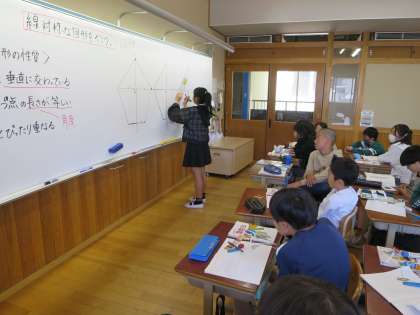 算数科の授業では、対称な図形の学習をしています。線対称の図形や点対称の図形を学習し、図形を見て対称の軸や対称の中心を見つけたり、2つの図形を描くこともできるようになりました。今後の算数の授業も進んで取り組んでほしいと思います。