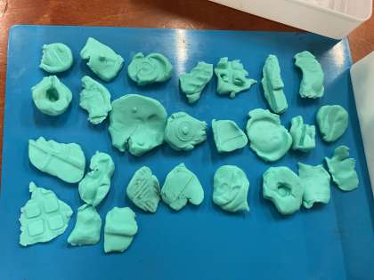 2年生 図画工作科「でこぼこはっけん!」 公開日 2025/06/12 更新日 2025/06/12 学校の様子 6月11日(水) 今日は、体育で水あそびをする予定でしたが、雨で中止。 かわりに、図画工作科「でこぼこはっけん!」をしました。 身の回りにある「でこぼこ」を見付け、ねんどで型をとります。 あつめた「でこぼこ」を見せ合ったり、比べたりしながら鑑賞しました。 思った以上に、身の回りに凸凹があることに気がついていました。