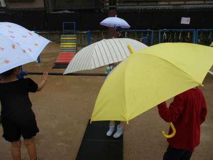 生活科では、あめとなかよしになろうと雨の日に散歩しました。