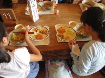 食堂で昼食をとりました。自分が食べられる量や栄養面などを考えて、おかずをとる姿がみられました。
