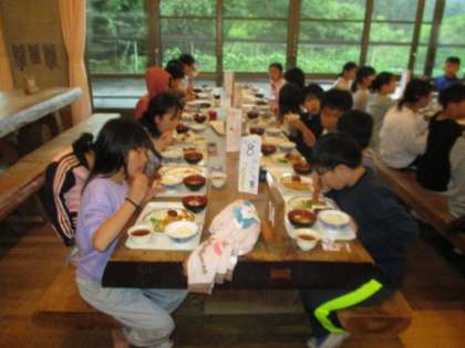一日目の夕食の様子です。これからの活動に備え、しっかりと食事をとる姿がありました。