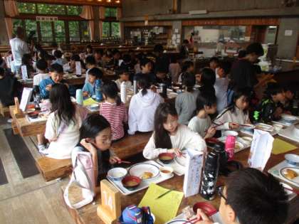 登山やモルックをして子どもたちもお腹が空いていたようです。もりもりと食べる姿が見られました。