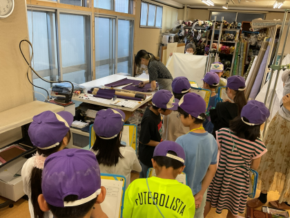 3年 社会見学に行きました 公開日 2025/10/02 更新日 2025/10/02 学校の様子 社会科「工場でつくられるもの」の学習で洛中高岡屋さんに社会見学に行きました。 座布団や布団を作る工程を実際に見ながら丁寧に説明していただきました。 生産現場では、職人さん達の技術に驚きの声をあげていました。 教科書を見るだけでなく、実際に工場を見学することでとても実りある学習になりました。
