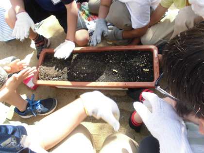 理科「植物を育てよう」の学習で,種まきをしました。