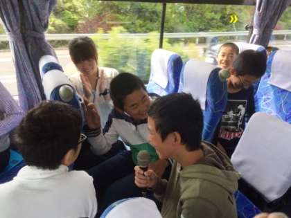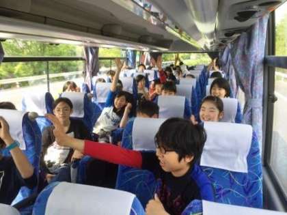 次のバスレクは,イントロクイズです。みんなが知っている曲を「プ」で歌います。