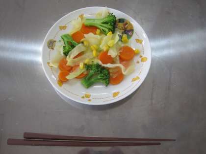 できあがったカラフルコンビネーションサラダは,見た目の彩りも味もよく,みんなでおいしくいただきました。