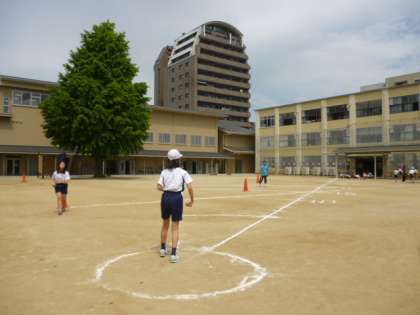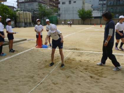 運動場では,立ち幅跳びとソフトボール投げ,20mシャトルランをしました。少し暑さを感じましたが,時折涼しい風が吹き,よいコンディションの中で体力テストを行うことができました。
