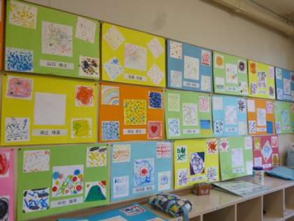 5年生の図画工作で「心のもよう」に取り組みました。喜怒哀楽を,さまざまな形や色で表現しました。各教室の掲示板に作品を掲示していますので,土曜参観のときにご覧いただけたらと思います。