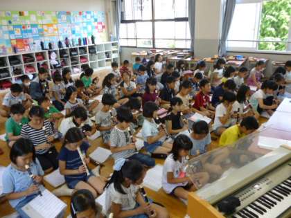 3時間目は,学年合同音楽を1組教室で行います。今日はそのリハーサルということで,1組に集まって練習しました。明日は,5年生の元気のよいリコーダーと,力強い歌声を皆さんにお届けできたらと思います!