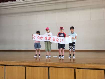 今日は児童集会がありました。今年から計画委員会は3年生から6年生まで入っています。4年生の4人が舞台に上がり,今月の生活目標を発表しました。はきはきした口調で発表しており,素敵な姿が見られました。