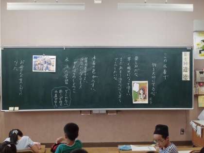 主人公の水着に対する心情の変化を中心に,自分達の考えと重ね合わせながら,物を大切にする心について考え合いました。
