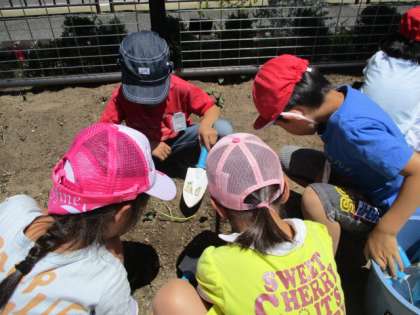 班ごとに、土をほぐして、つるをうえました。