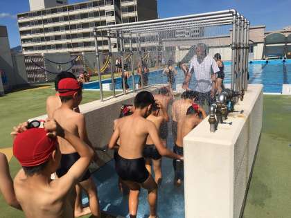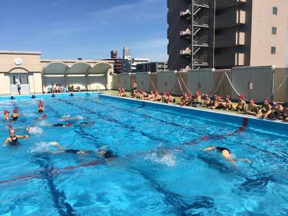 今日から水泳学習が始まりました。天気は快晴。まだ少し水は冷たかったようですが,みんな楽しそうに取り組んでいました。安全面に気を付け,取り組みます。