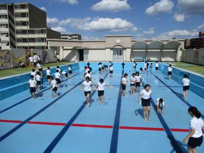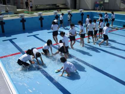 プール学習ができるようにするために、一生懸命にプール清掃をしました。