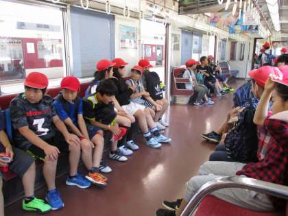社会見学で奈良に行ってきました。その電車の中での様子です。静かに乗ることができていました。