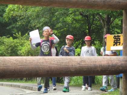 雨はすっかり上がりました。やや、蒸し暑いものの活動しづらい気候ではありません。みんな、ポイントにある問題を解きながら、所内を回りました。