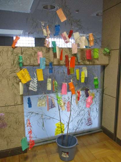 1年生はみんなで短冊に願い事を書いて飾りました。