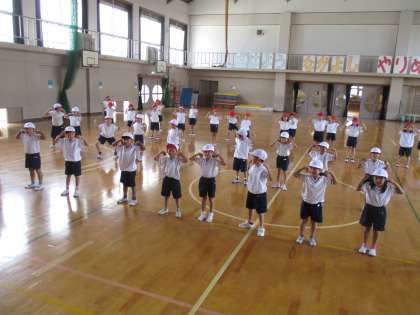 1年生は玉入れの前にダンスを踊るので,今日もみんなで練習をしました。