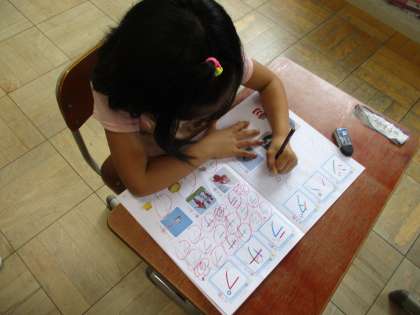 ひらがなのときと同様,お手本の形をよく見てていねいに書いています。