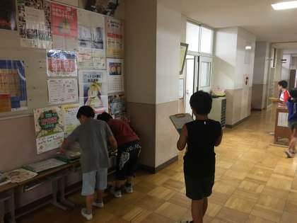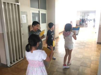 今日は社会科の学習で学校の消防設備を探しに回りました。子どもたちが思っていた以上にたくさんの設備があり,驚いていました。
