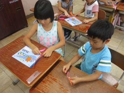 前回は,紙を折って重ねることで長さを比べることができましたが,ノートはできないので,べつのもので長さを比べることに気づきました。テープを使ってうまく長さを比べることができました。