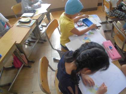社会の時間に京都市と京都府の地図について学びました。京都市がどこにあるかや京都府にある他の市について学習し、京都についての知識が深まりました。