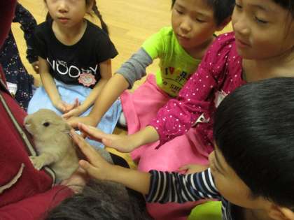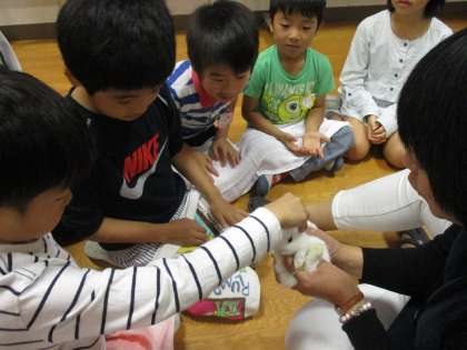 今日は,学校で飼っているウサギとの触れ合いを行いました。