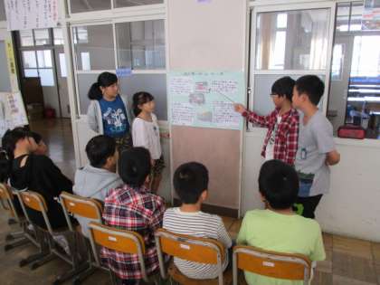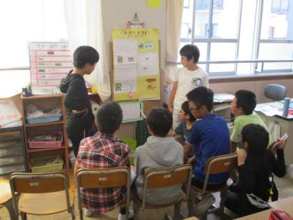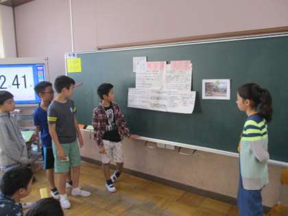 三大祭りについて調べたものの発表を1・2組合同で行いました。