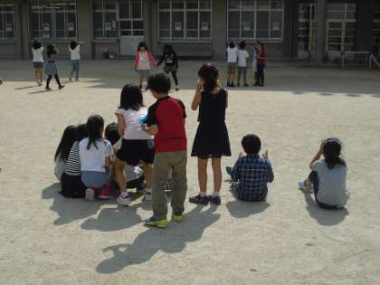 また、ちいちゃんのかげおくりで登場した「かげ送り」という遊びもしました。とても良い学習になりました。