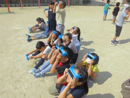 理科の時間に太陽の観察をしました。初めての体験でしたが、太陽について知識を深めました。