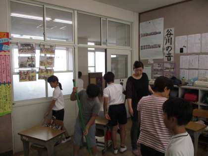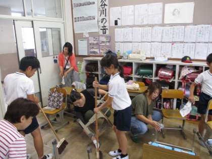校内清掃では保護者の方の協力もあり,教室があっという間にピカピカになりました。子どもたちの動きもいつも以上によくテキパキと動けていました。