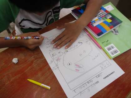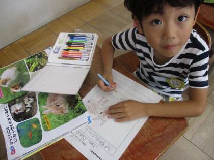 先週,触れ合ったり観察したりしたウサギを観察カードにかきました。