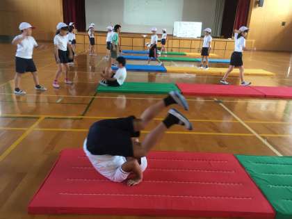 今日はマット運動の2時間目でした。準備の仕方をもう1度確認したり,自分のできる技を確認したりしました。班で協力して取り組む姿が見られてきたので,成長を感じました。