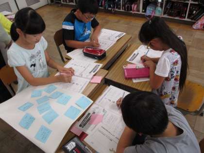 班でふり返りをし,これからできるエコの取り組みについての意見を出し合いました。