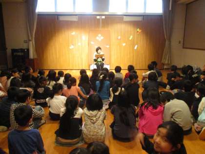 もみじ読書週間の取り組みとして,わぁのなかまの方々が中間休みに多目的室で絵本の読み聞かせをしてくださいました。今週,毎日,中間休みに実施してくださるそうなので,明日も楽しみです。今日は「はっぱのフレディ」というお話でした。