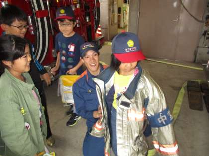 子どもたちの振り返りでは「消防士さんの仕事の大変さが分かった。」「装備が思っていたより重くてびっくりした。」など,良い経験が出来たと思います。