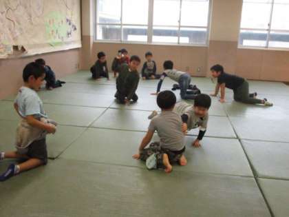 屋内で走らず遊ぶことを考え、「ハイハイおにごっこ」なる遊びが誕生。