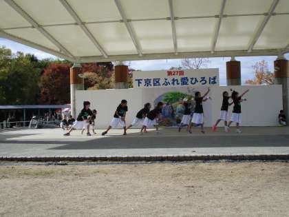 「下京区ふれ愛ひろば」というイベントが梅小路公園でありました。光徳小学校の人たちもダンスでイベントを盛り上げていました。
