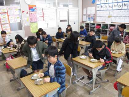 給食週間の催しの1つである豆つまみ大会のクラス代表を決めるために,クラスの予選会をしました。なかなかうまくつかめない人もいる中,やはりきれいな箸の持ち方をしている人が多くつかむことができていました。