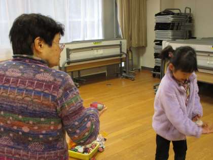 今日は地域の方々が,むかしあそびを教えに来てくださいました。めんこやあやとりなど,初めてやる遊びもあり,子ども達は「難しい!」と言いながらも,楽しんでいました!