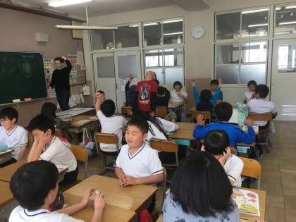 今日は5年生になって初めての外国語活動でした。ジェイミー先生と一緒にキーワードゲームなどをしました。