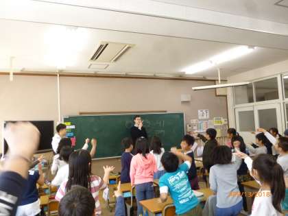 自己紹介の後、英語でじゃんけん大会をしました。