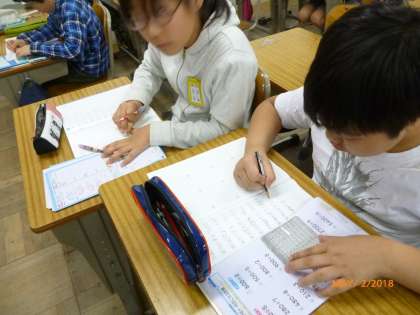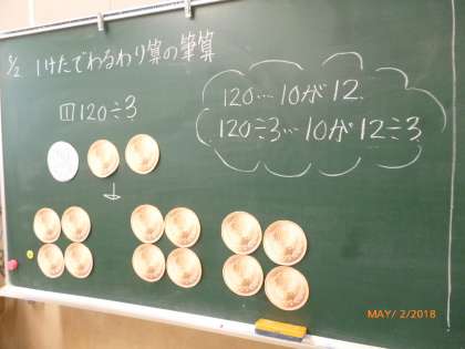 算数は割り算の学習に入りました。2けた÷1けたの計算から始まり、この後ひっ算の仕方を学びます。ノートも丁寧に書いていましたね。